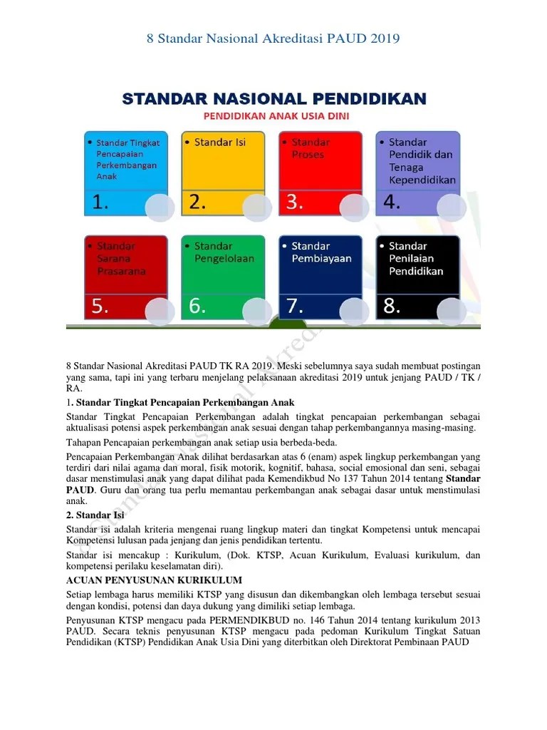 Dalam konteks pendidikan anak usia dini (paud) salah satu standar. Ibtidaiyah yang pada tahun 2019/ 2020 ini hendak melakukan visitasi akreditasi, . Dokumen jenis pembiayaan yang direncanakan oleh. Pada kesempatan kali ini kami akan membagikan file akreditasi lengkap sesuai dengan bsnp mengenai 8 standar akreditasi paud/tk yang teridiri dari, . Aplikasi dapodik ini nantinya akan otomatis terintegrasi dengan aplikasi sispena 3.0.