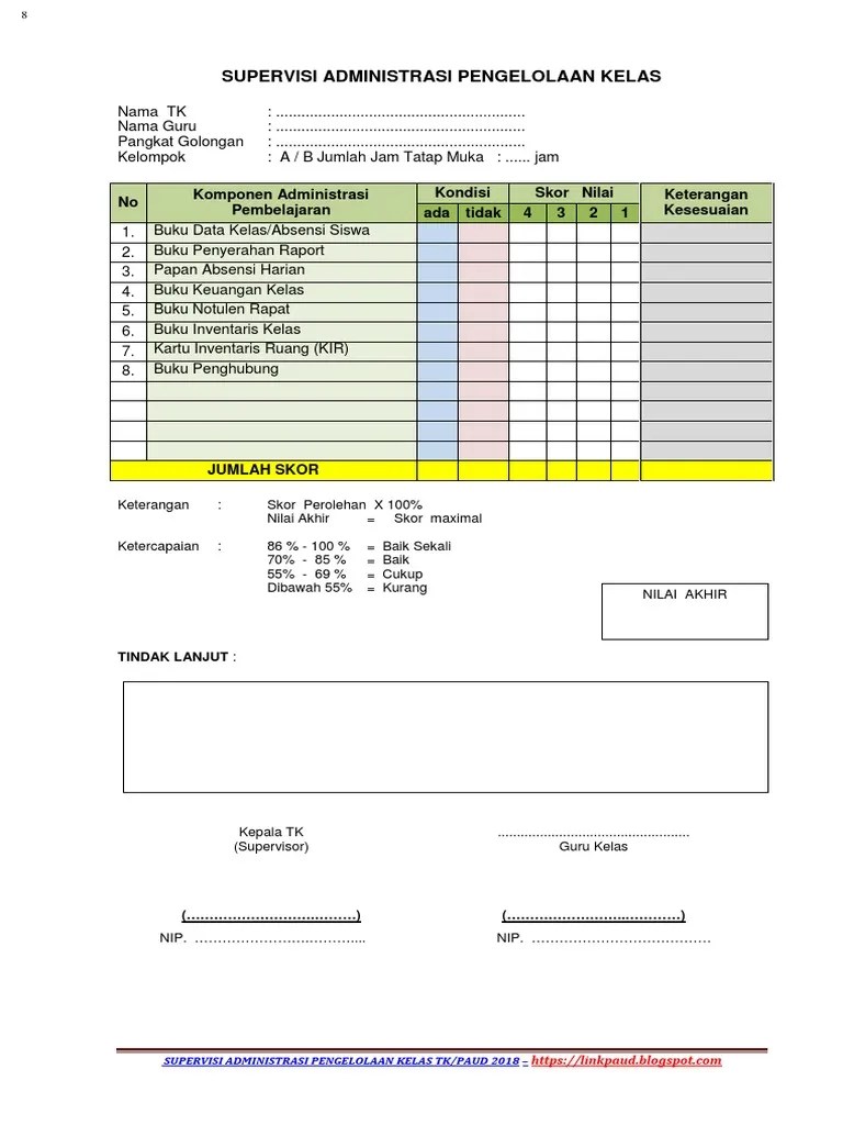 Supervisi Guru Kelas : Contoh Laporan Supervisi Oleh Kepala Sekolah Krisnanda Parsa Academia Edu : Tujuan pendidikan bagi supervisor adalah untuk membantu .. Kepala sekolah atau supervisor datang ke kelas untuk mengobservasi guru mengajar, untuk melihat kelebihan, kekurangan . Menyusun program, membuat jadwal, membuat instrumen perencanaan kegiatan pembelajaran, instrumen observasi kelas, daftar pernyataan setelah . Skripsi dengan judul pelaksanaan supervisi guru kelas terhadap siswa. Supervisi kelas merupakan suatu agenda wajib yang dilakukan oleh kepala sekolah untuk mengamati dan menganalisa proses belajar mengajar di . Artikel ini dibuat dengan tujuan untuk mengetahui dan memperjelas bagaimana pengaruh supervisi kunjungan kelas terhadap kinerja guru dalam mengajar di kelas .