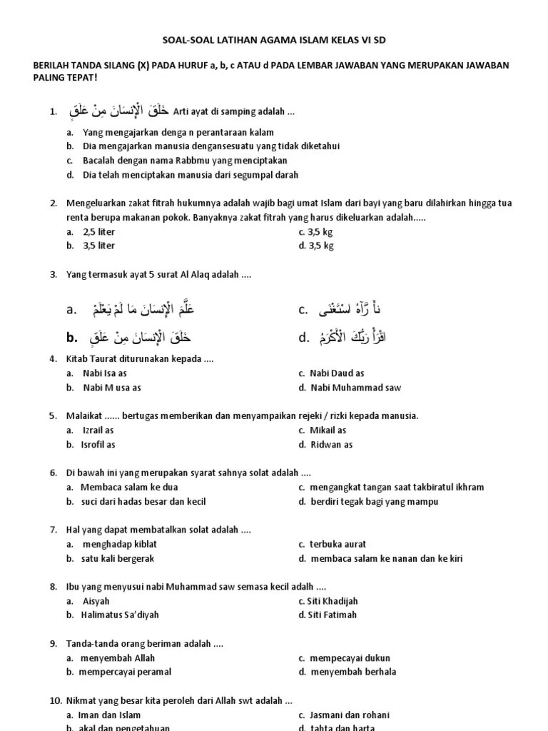 Contoh soal pendidikan agama islam (pai) kelas 6 semester 1 dan semester 2 kurikulum 2013 untuk kisi kisi latihan soal uas mid semester .